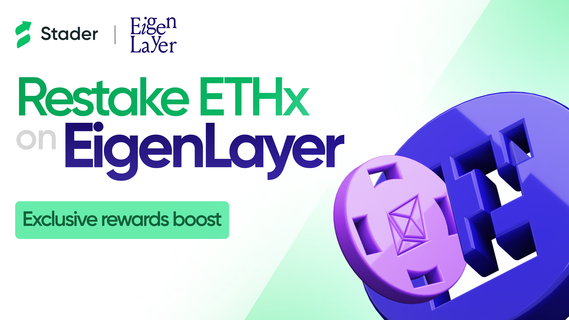 Ethereum EigenBoost 2.0 + EigenTurbocharge | 2.2Mn Extra EigenLayer Points with ETHx EigenLayer LST caps resume on Feb 05, 2024. With ETHx accepted as collateral on EigenLayer, Stader is excited to announce EigenBoost 2.0 and EigenTurbocharge, an exclusive way to earn extra EigenLayer Restaked Points.